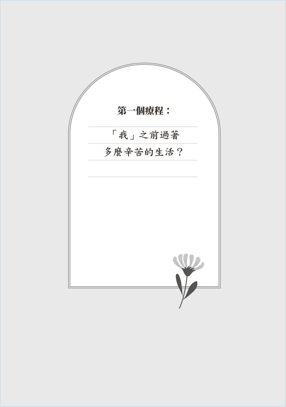 與上千位來訪者相處的過程中,他深刻理解每個人「無法好起來的原因」,並逐步建構出一套能真正帶來改變的自我療癒流程,期盼你運用這套方法在十週內循序漸進地療癒自己。