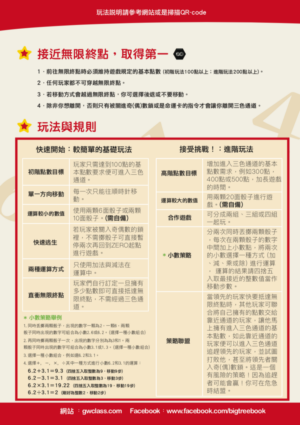 ‧ 有趣又刺激的運算遊戲:贏過所有對手,成為第一個抵達無限終點的玩家!藉由32張命運卡、80張點數鈔票,以及2顆十二面骰子,《奔向無限》機智桌遊考驗玩家們的數學策略與能力!