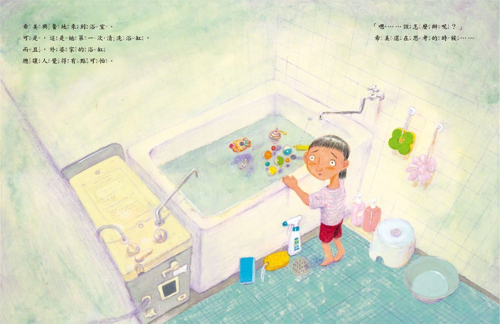 可是,這是她第一次清洗浴缸,而且外婆家的浴缸讓人覺得有點可怕。不過,為了外婆,她依然決定試試看。