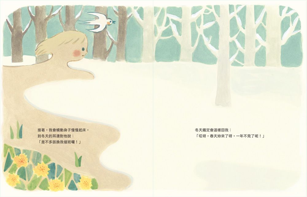 ●「從沒想過四季裡的春天和秋天,其實是「不見面的好朋友」。讀著她們分享花朵與心情,心裡暖暖的卻有點惆悵。原來即使不曾相見,只要彼此惦記,就是永遠的好朋友。這份情感,很值得陪孩子一起細細品味。」──「溫妮媽媽親子共讀」IG版主|溫妮媽媽
