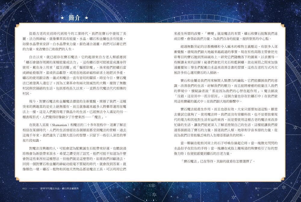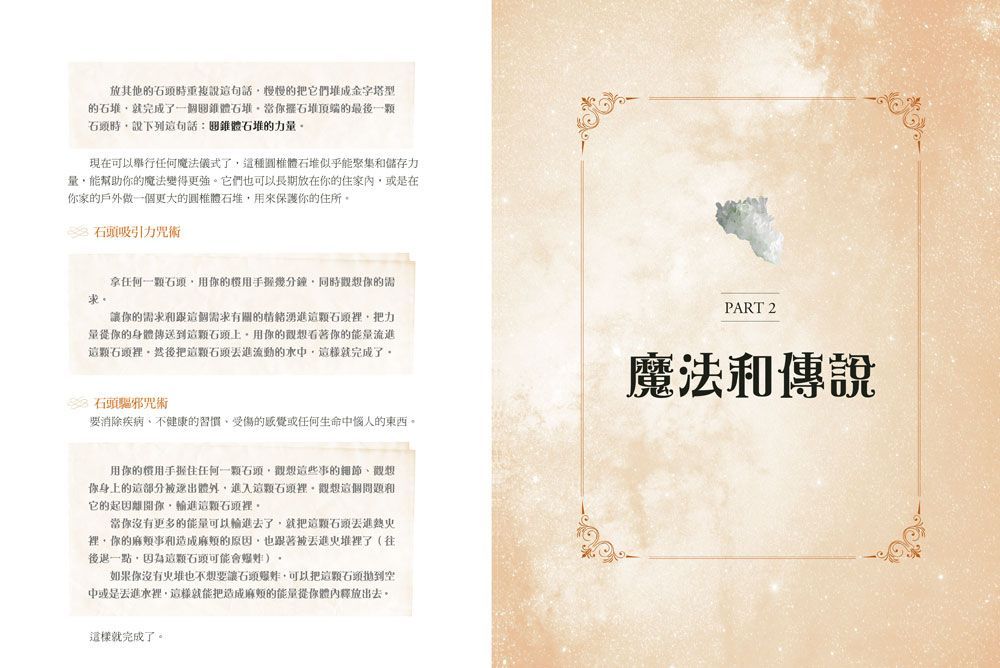 【讀者好評】「這本書為初學者介紹魔法,同時解釋如何使用、充電和清潔水晶、礦石等;為經驗豐富的從業者,介紹更多元的占卜儀式。書中的儀式是民間魔法風格,不需要太多準備或魔法工具,非常適合面臨緊急狀況時使用。」——Heather Purri