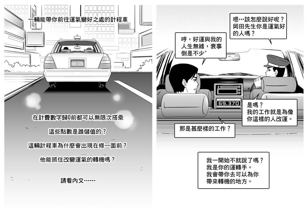 「你是運氣好的人嗎?還是……」「好運與我的人生無緣,衰事倒是不少。」「是嗎?我的工作,就是為像你這樣的人改運。」「那是怎樣的工作?」「我一開始不是就說了嗎?我是你的運轉手(司機)。」