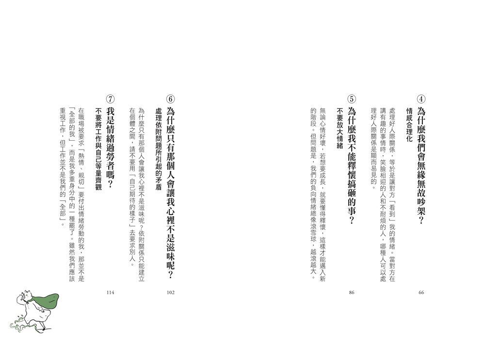 本書以現代人常見的情緒問題做為標題,讓讀者可以快速依照自己的需求選讀,透過每一篇章的情境導引,揭開情緒失控的真面目,避免一再陷入情緒化迴圏,進而在理解和同理中開啟練習,一步步建立穩定的情感關係。當你能理解自己的情緒,同理他人的情緒,那麼當情緒來時,就能將它引導成為你的堅強能量,進而成為守護你的後盾。