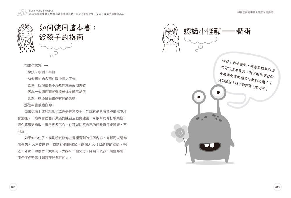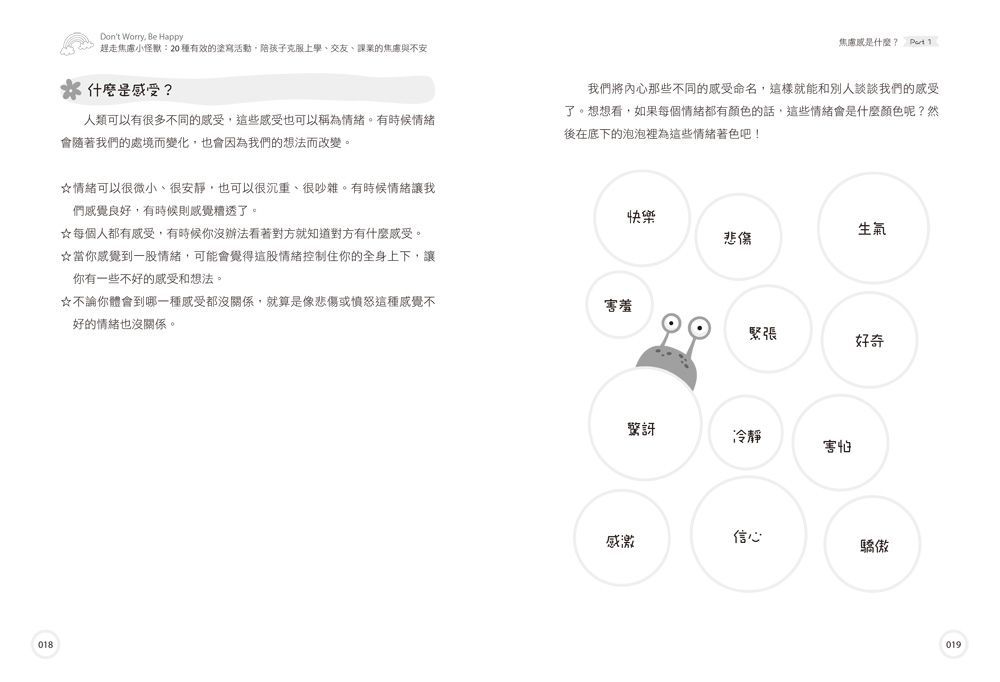 焦慮就像為氣球充氣,累積過量時,隨時會爆破。6-12歲的孩子經歷的很多事情,都會影響他們的自我價值感,並在未來的人生路途中繼續發酵。這本書可以說是新世代小孩面對焦慮感的大補帖。