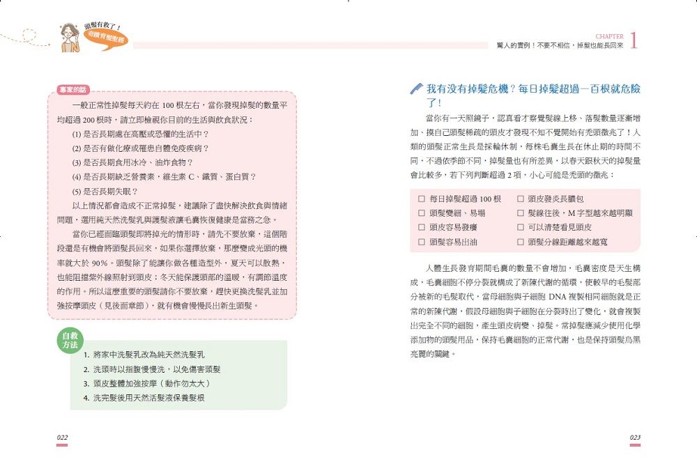 ★過去我教導許多醫師頭皮管理、生髪技術、植髮手術,本書有很多高超養髮方法與我的頭皮教學內容、診所看診項目相得益彰。──申疊自然診所院長、生髮抗老化醫學會理事長/顏權騰 醫師