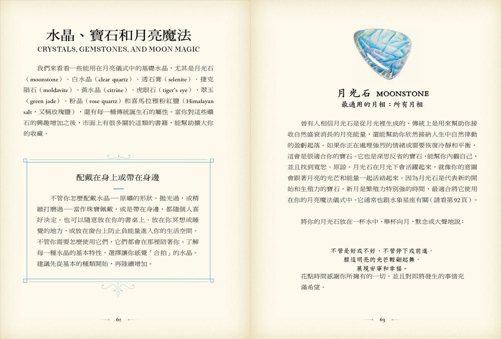 ★我喜歡讀這本書,可以學到很多月相、不同的女神、天然寶石、草藥的含義、與月亮一起冥想的方法等。─Moon child