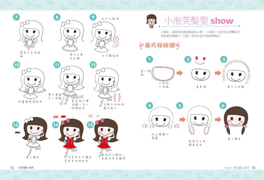 不但公開了怎麼畫小泡芙的華麗打歌服,也教你畫出乖巧妹妹頭/燈籠頭/綁馬尾等姐姐們的多變髮型,並帶小朋友一起觀察自己的臉部表情,一邊畫畫、一邊運動臉部小肌肉,設計了表情Magic秀單元。