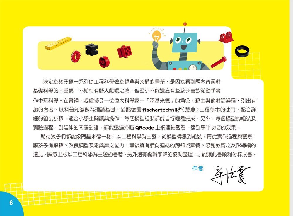 著作:孩子的第一本工程科學(I、II)、孩子的夢想機器人、跟著阿基米德玩自然動力車STEAM