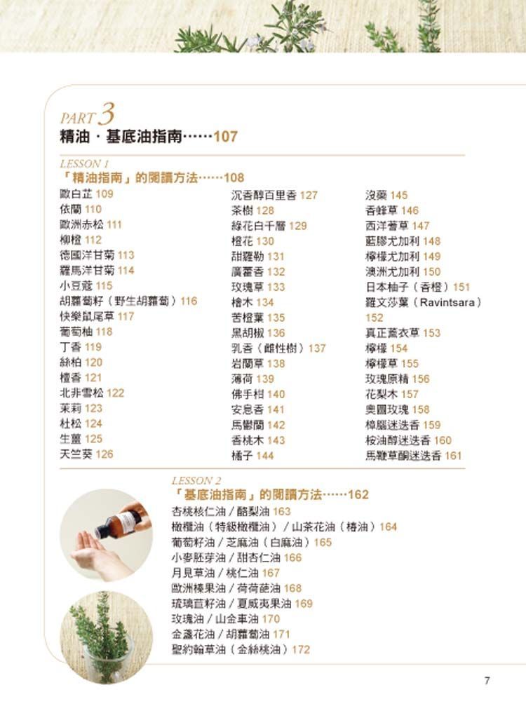 精油小物的作法、按摩等技法的步驟都以彩頁介紹,可以感受到出版社的誠意。精油和基底油的說明也編排得井然有序;所以,儘管資訊的份量相當可觀,讀起來卻覺得很輕鬆。同一頁的篇幅除了介紹我要查詢的精油,也一併列舉了屬性相合的精油;有關調合的訣竅也寫得非常詳細,讓我非常滿意。對想從基礎好好學起的人而言,這本書應該是很超值的選擇。