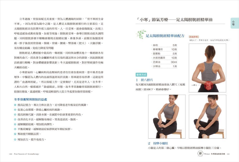 「這是一本結合中醫經絡、節氣加上精油調配按摩的好書,十分適合忙碌壓力大的現代人做為養生保健的指引,誠摯推薦給每一位追求自然養生的人!」──宜民時尚中醫診所院長 田宜民
