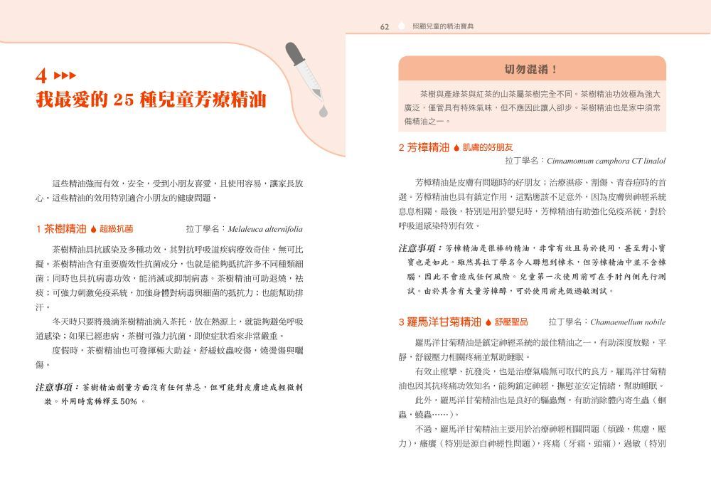 本書將告訴你兒童適用和禁忌的精油,以及提供最安全的精油指南。