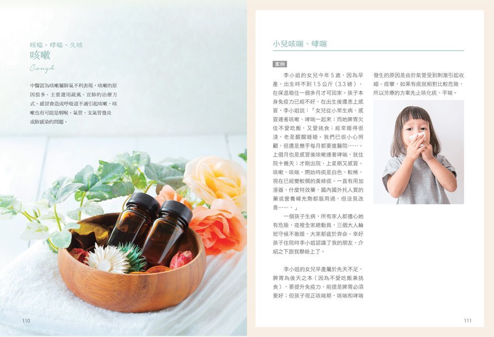 蔡嘉瑩獨闢蹊徑,結合多年來的芳療臨床經驗與中醫理論,分析疾病的不同發作原因及症狀,對症下芳香處方。同時有效避免使用抗生素的不良後果,提供了一種嶄新的自然整體療法「蔡式中醫芳香療法」,對家長來說安全、有效,操作簡單,也使更多的孩子免於不必要的病痛!